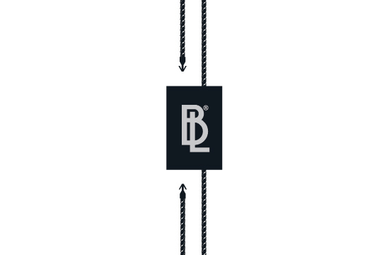 Plastic seal ST-M161 with a simple rectangular shape, customized with a text, Brand name, mark, website, etc., and a logo/emblem, suitable for any type of product in the textile field, clothing, footwear, bags. This type of seal is made of high quality materials, using the most advanced technologies in the field.