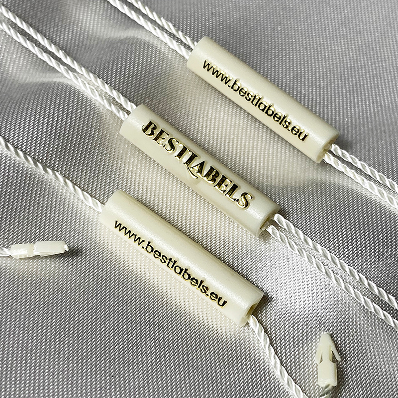 Plastic seal ST-M233 with an elegant design with a cylindrical shape customized with Brand’s name, ideal for products such as ladies' and men's clothes, shoes, jewelry, watches, etc. This type of seal is made of high quality materials, using the most advanced technologies in the field.