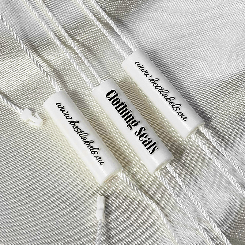 Custom plastic seal tag ST-M253 for fashion products, such as clothes, footwear, bags, jewelry, clothing accessories, etc.