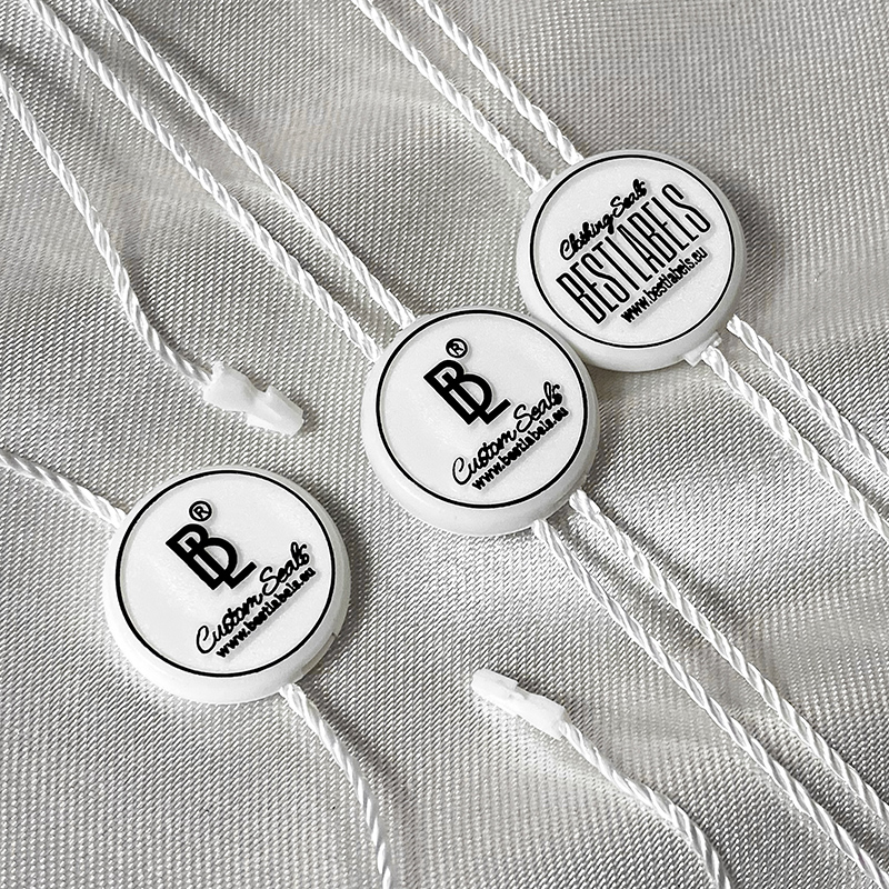 Plastic seal with an elegant design and a round shape ST-M91, can be customized on two sides with the Brand name or the emblem/trademark, and it is ideal for products such as clothes, bags, shoes. This type of seal is made of high quality materials, using the most advanced technologies in the field.